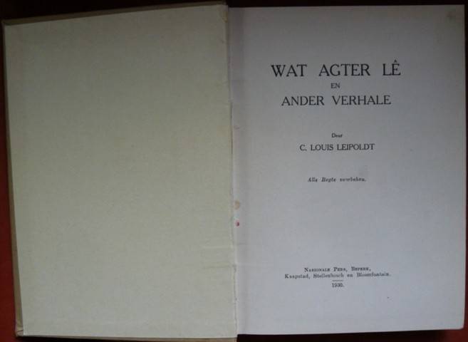 1st Edition, Nasionale Pers Beperk, 1930. Cream/Tan cloth boards, the boards are rubbed and marked. corners are bumped . No Inscriptions, pages are clean, except for browning, binding is tight. Afrikaans