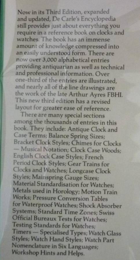 WATCH AND CLOCK ENCYCLOPEDIA By D De Carle