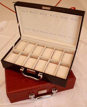 WATCH BOX 12 slot PU leather – absolutely beautiful. Also has 12 strong elastic hooks for hanging extra watches or anything. Dark red or Black.
