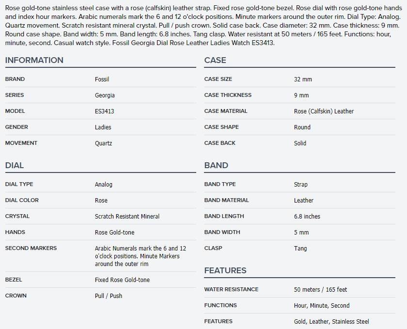 WATCHES - FOSSIL GEORGIA CALF SKIN STRAP LADIES WATCH (ES3413)