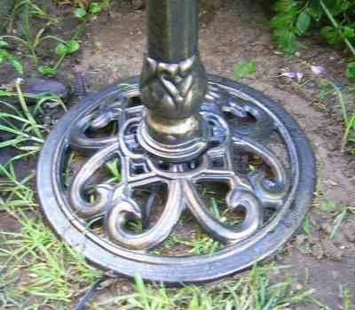 Base and stem : cast iron. Bath and feature : cast aluminium