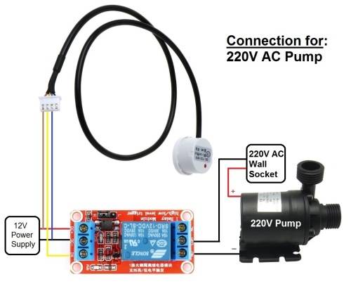 * When used to control 220V AC or 6V DC, 12V DC, 24V DC Pumps, a relay switch must be used. Please search "Relay" in our store