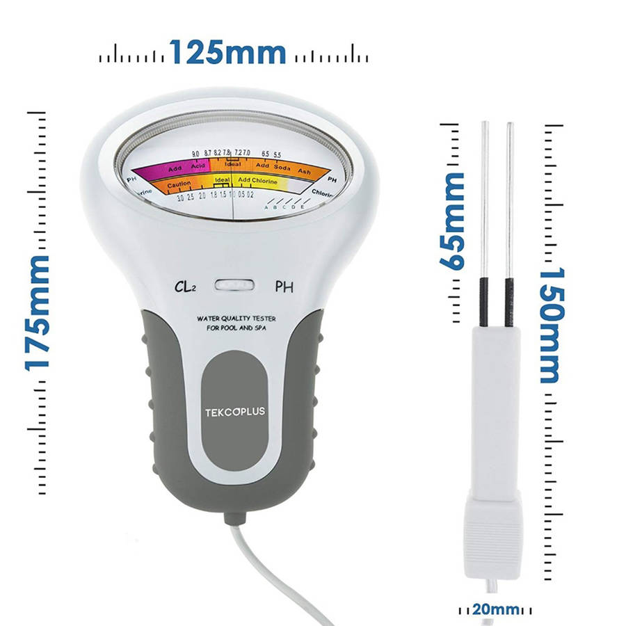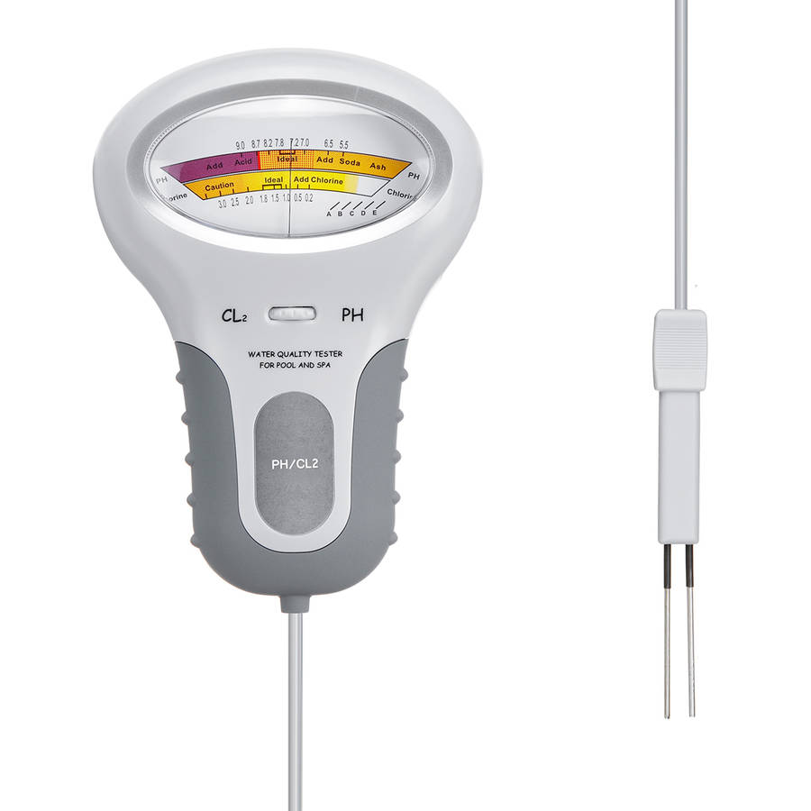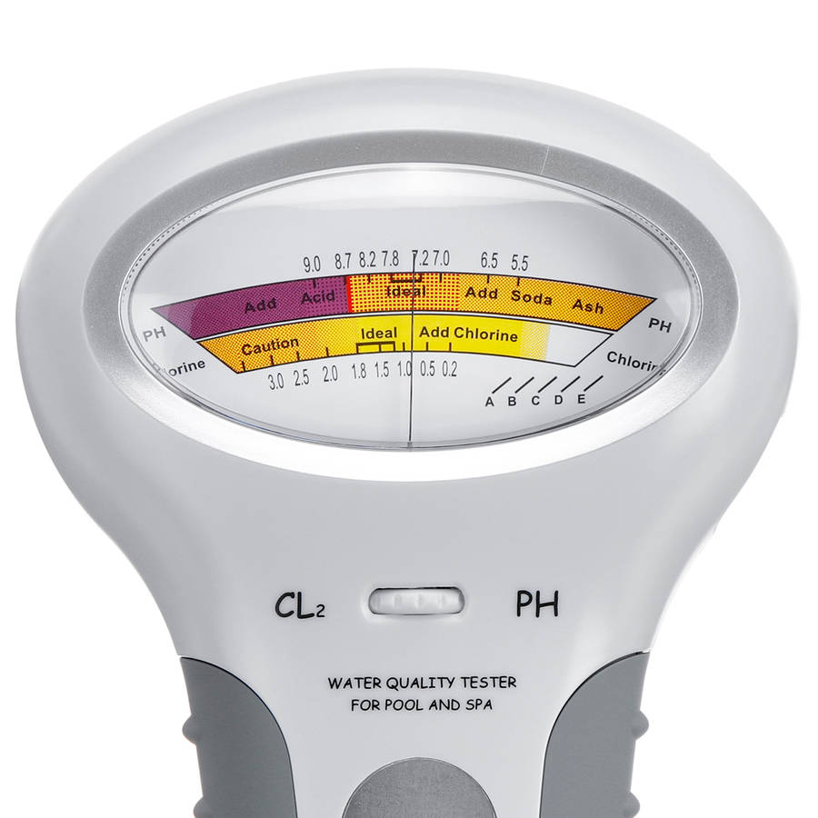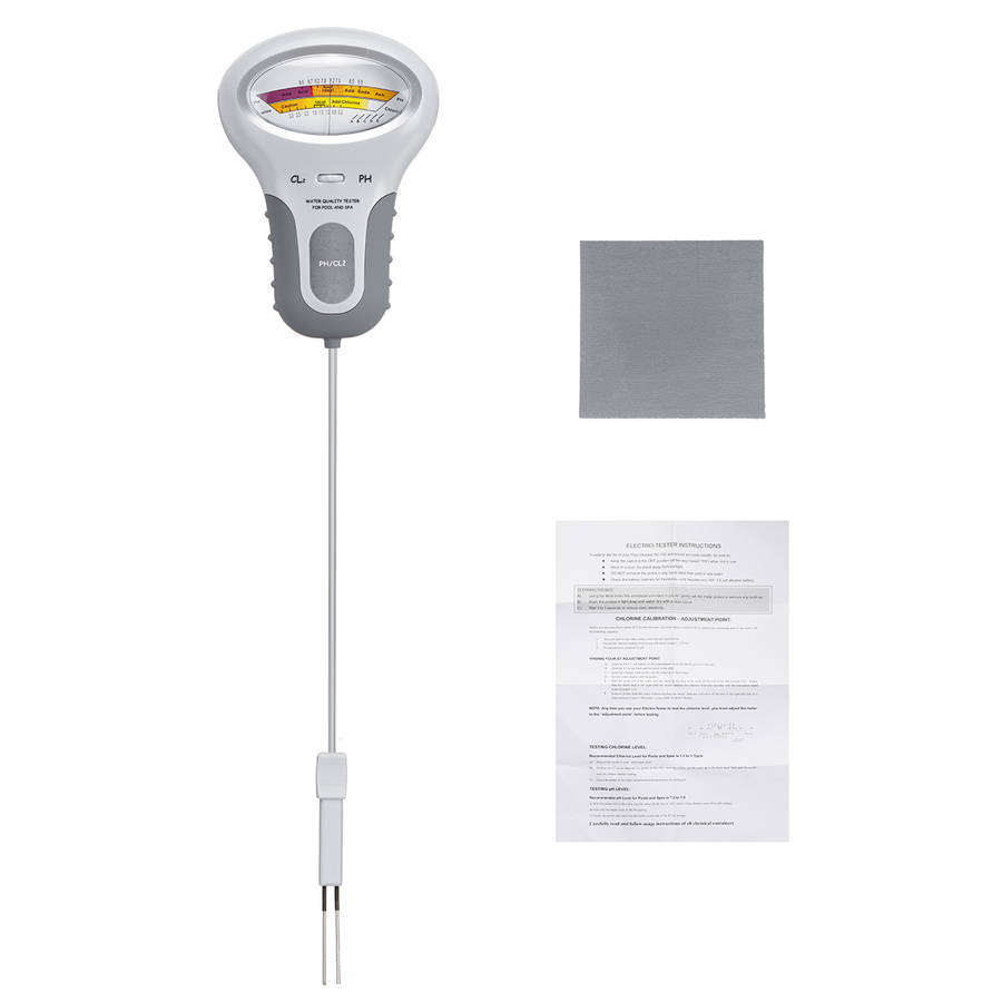 - An electro-tester for testing pH and chlorine (Cl2) levels in water for routine monitoring of pH and chlorine levels in swimming pools, spas and various water sources.
