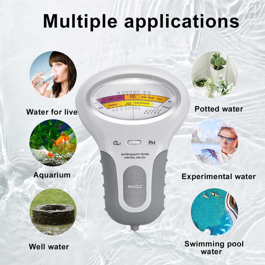 Water Quality PH CL2 Chlorine Tester Gas Level Meter for Swimming Pool SPA Tubs