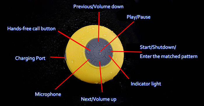 To be used as a speaker for your tablet PC or computer when you are playing games, watching films or listening to music; what's more, with its water resistant function( do not drop the speaker into the water! ), you can enjoy hands-free music and phone calls in the shower room, no worry about bringing any damage to your phone.