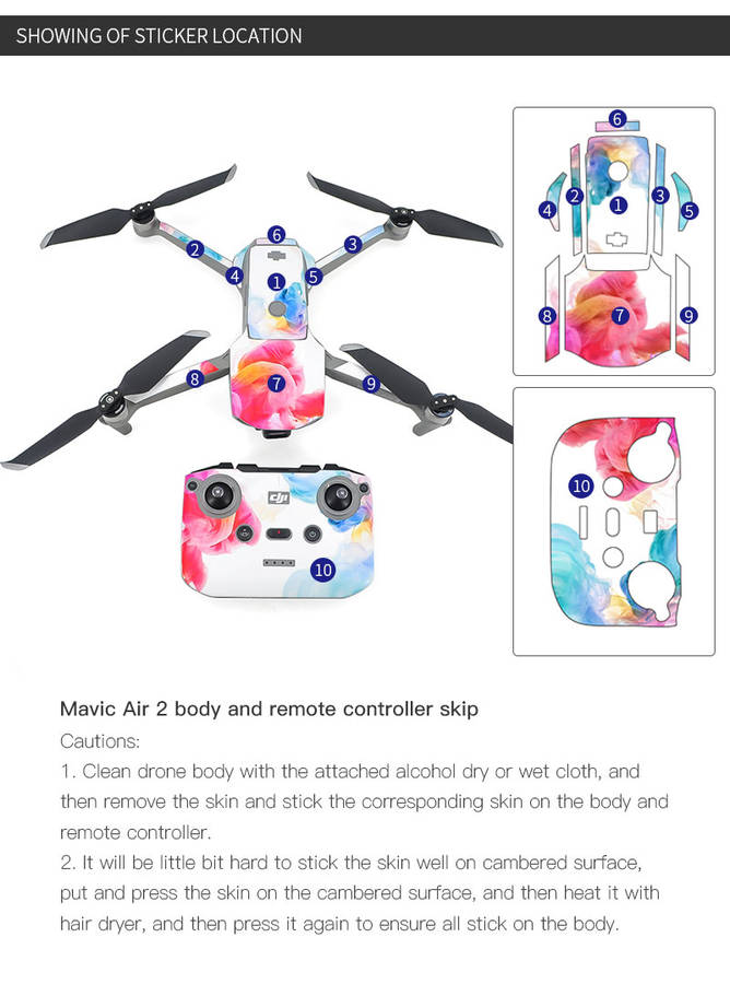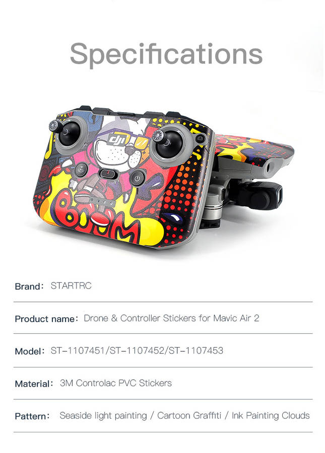 Waterproof Anti-Scratch Drone Body&Remote Controller PVC Sticker for DJI Mavic Air 2 RC Quadcopter