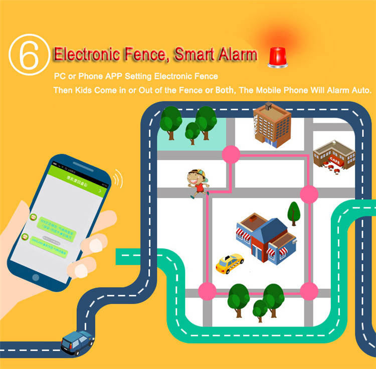 6. The electronic fence: designate an area on the map using the as a center, it will immediately send APP and SMS alarms when it is out of the area.