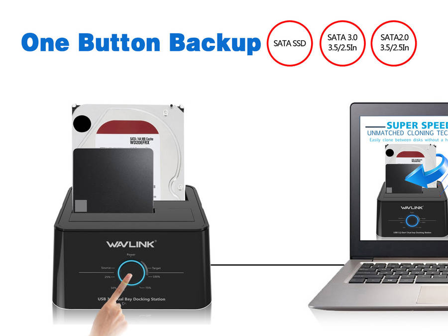 WAVLINK 5Gbps USB 3.0 to SATA Dual-Bay 2.5 3.5 Inch HDD SSD Enclosure Hard Drive Docking Station