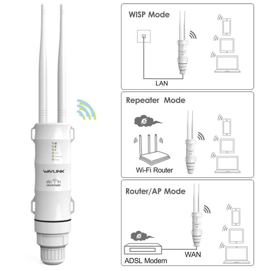 The AC600 HighPower Wi-Fi AP/Repeater is mainly used for providing free Wi-Fi service in big area such as factory, community, street or etc. The AP/Repeater can take an existing 2.4GHz or 5GHz wireless signal, repeat and extend it to a longer range where it is too far away for the router or access point to reach. The AP/Repeater simultaneously supports 2.4G and 5G wireless network connection, and it can supports 2.4G and 5G transmission speeds of up to 600Mbps. It has 2 x External Antennas providing even better wireless performance, transmission rates, stability technology automatically avoids channel conflicts using its channel selection feature.