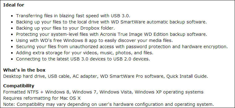 Ultra-fast transfer rates - My Book desktop storage is optimized for the fastest possible data transfer rates. Connect this drive to a SuperSpeed USB 3.0 port to access and save files up to 3x faster than with USB 2.0.