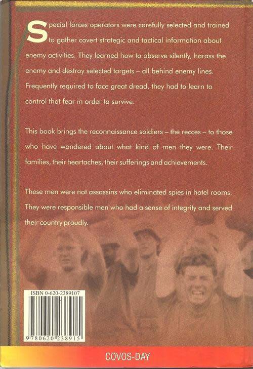 The story of the South African Special Forces "The Recces." Pro rata, the most highly decorated unit during the Bush War in Angola and SWA. Covos Day soft cover edition written by Paul Els, published 2000, in very good condition. Lots of photos. 249 pages with index, Roll of Honour, Awards and Decorations.