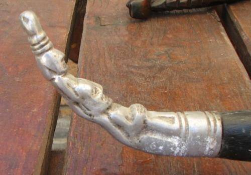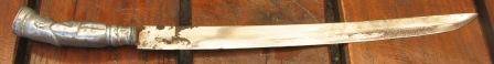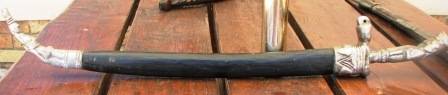 I WAS TOLD THAT THE ENDS COULD POSSIBLY BE SILVER. THE SHEATH IS MADE OF WOOD.