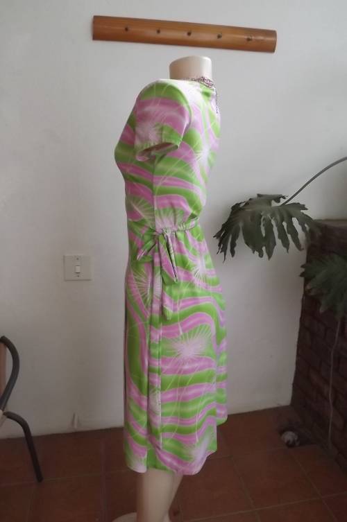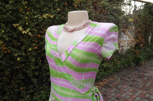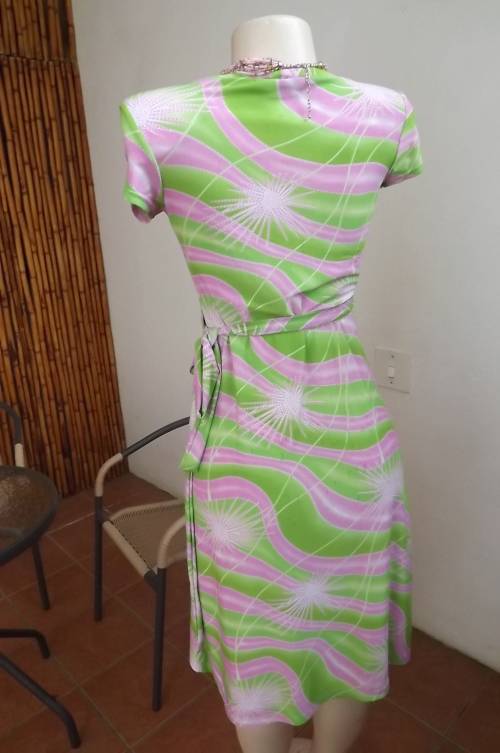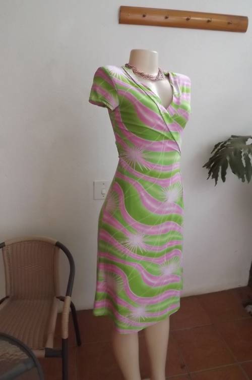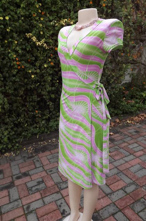 Wear-anywhere wrap a round capped sleeve dress in silky stretch polyester size 32/8.By Audacity