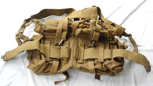 I am pleased to offer on this auction this South African Webbing BACKPACK / GROOTSAK, used by a SADF member during the 1970's. This backpack has all of the hanging loops, straps and buckles attached, as well as the belt sections and shoulder yoke (See photos).