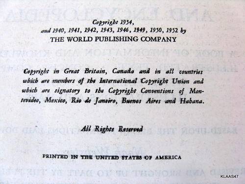 WEBSTER'S COMPLETE REFERENCE DICTIONARY & ENCYCLOPEDIA : THE WORLD PUBL. CO. : 1954 : **SPINE DAMAGE