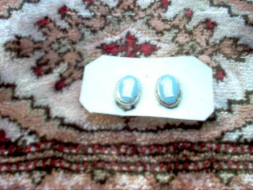 WEDGWOOD AND HALL MARKED CLIP-ON EARRINGS.