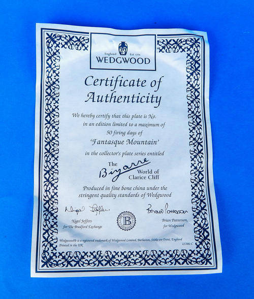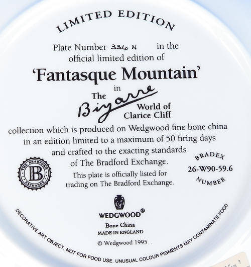 This Wedgwood Clarice Cliff " Fantasque Mountain " Plate with COA (not numbered) is from the Limited Edition Bizarre World Of Clarice Cliff Collection.
