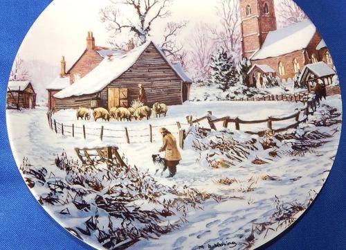 This Wedgwood Queen's Ware Plate "Christmastide" is the December plate from the series "The Farm Year" and is signed by Michael Herring.