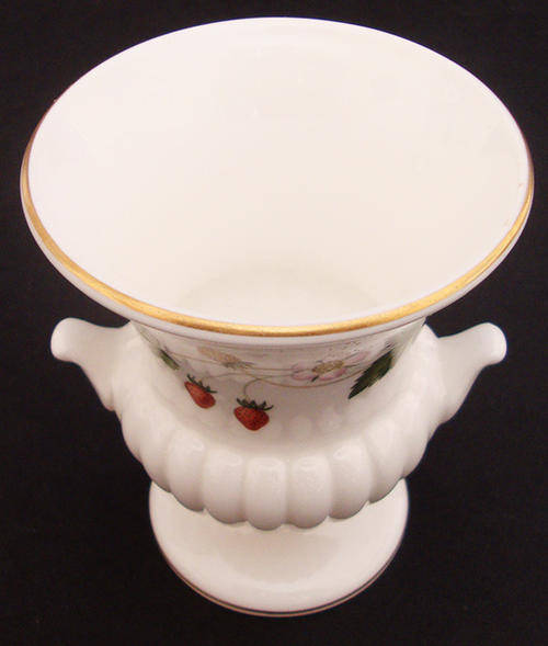 VINTAGE WEDGWOOD BONE CHINA ENGLAND WILD STRAWBERRIES SMALL URN VASE WITH GOLD TRIM CIRCA 1960 TO 1979 - BEAUTIFUL COLLECTORS ITEM.
