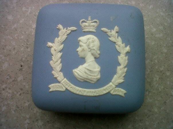 WEDGWOOD JASPER QUEEN ELIZ. CORONATION COVERED BOX-1953 Wedgwood Blue Jasperware covered box with a applied white jasper profile of Queen Elizabeth II commemorating the Queen's Coronation. It is in excellent condition with no chips, cracks or restorations. On the bottom are several Wedgwood markings - incl. 1953/Wedgwood/ Pale blue jasper/ Made in England. Commemoration : Queen Elizabeth's Coronation in 1953 Maker : Wedgwood Condition : Excellent 4" square 2" high