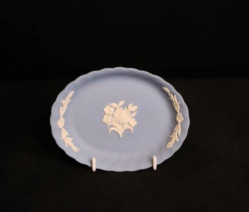WEDGWOOD -JASPERWARE--OVAL light BLUE small PLATE 11.5CM-----FLOWER DESIGN---I have reduced the price as on the back are glue marks -this does not distract from the beauty of the front image .Please checkout this site for more JASPERWARE ITEMS AND ADD 2 MORE TO THIS PURCHASE FOR FREE POSTNET TO POSTNET DELIVERY.SPECIAL JANUARY PRICE ONLY R125