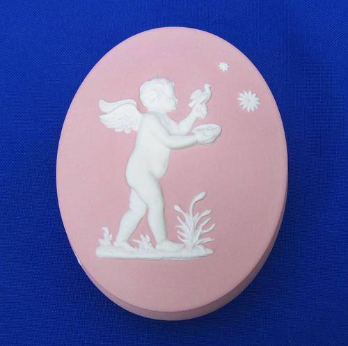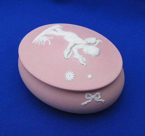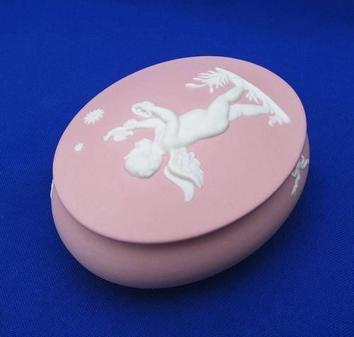 This Wedgwood, made in England, Jasper Ware Cupid Apollo Trinket Box is in excellent condition with no chips, cracks or restoration noted.