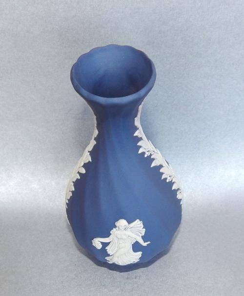 This Wedgewood Vase measures 13.5 cm in height and is 7.5 cm at the widest point..