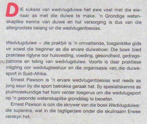 Wedvlugduiwe - die praktyk -- Ernest Pawson