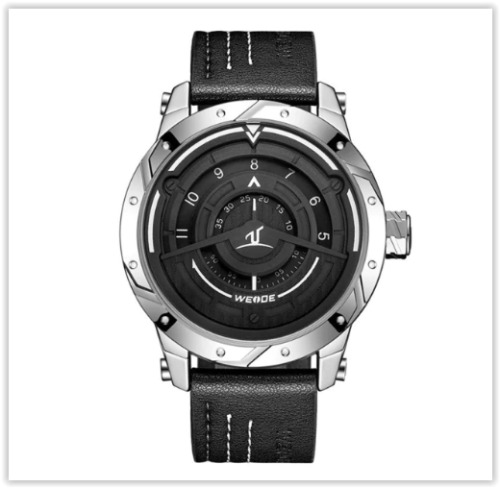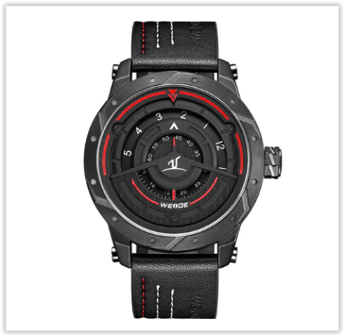 Weide Analog Display Waterproof Black Leather Bracelet Men Sport Watch MAD R300