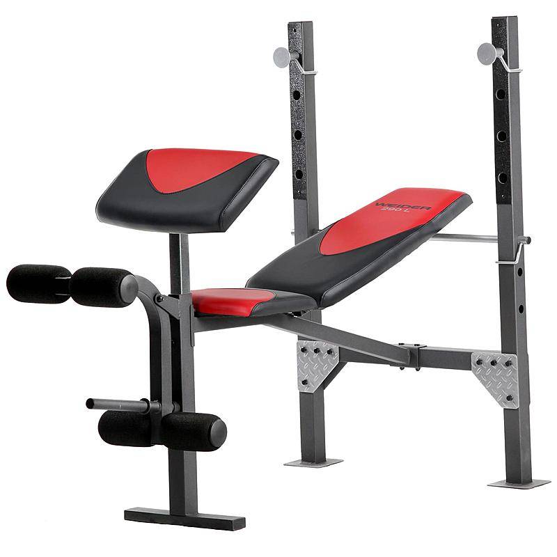 Perfect for the user just starting a strength program, the Weider Pro 270 L accommodates standard width bars. Featuring a preacher pad and a 4-roll leg developer, you'll work both your upper and lower body for total-body results! The 270 L also features sewn vinyl seats and a multi-position bench that adjusts to flat, incline and decline. An exercise chart is also included so you can get started on your workout today!