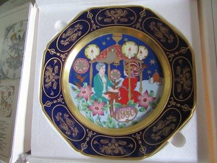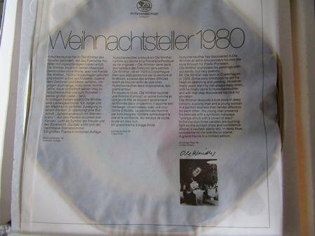 Weihnachts Teller 80Limited Edition Collectors Plate designed by Ole Winther by Hetschenreuther Germany, the plate is in the original box, Ole Winther was born in Copenhagen in 1928, since early childhood he set his heart on sketching and painting. Ideal for the collector or art lover as Winther expresses his paintings poeticly without words. The plate is 31cm x 31cm with a stunning cobolt blue and gold band in mint condition.