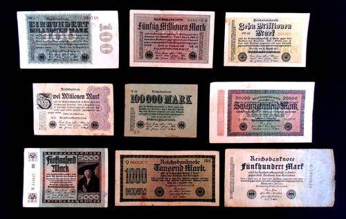 Up for auction is this lot of nine different high denomination Mark Weimar Republic/German banknotes/paper money from 1922/23. From 1921 to 1924 Germany was trying to pay off war debts and hyperinflation was at its peak. This is believed to have contributed to Nazi takeover and it gave Hitler the platform to rise to power. Some of these notes are huge in size and really pretty, all of them are circulated and they are in rough condition. All of these are from my grandfather's collection. As always, please take a close look at all the pictures since they form an important part of my description.