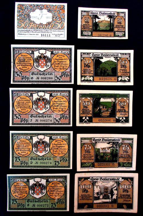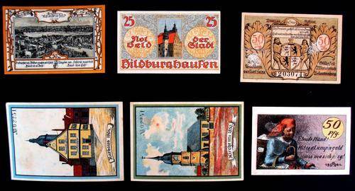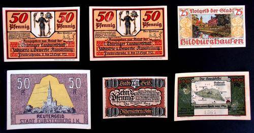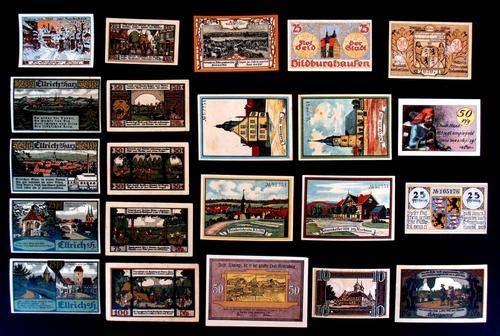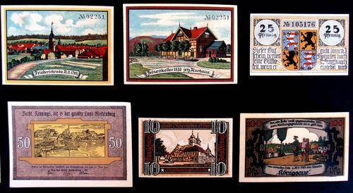 Up for auction is this lot of 22 different Weimar Republic/German Notgeld/Emergency money from 1920 to 1922 in very nice condition. From 1921 to 1924 Germany was trying to pay off war debts and hyperinflation was at its peak. This is believed to have contributed to Nazi takeover and it gave Hitler the platform to rise to power. I have little knowledge about old bank notes, I have tried my best to arrange these lots the best I could, so please bear in mind that the lots I am posting are not necessarily of a series belonging together. As always, please take a close look at all the pictures since they form an important part of my description.