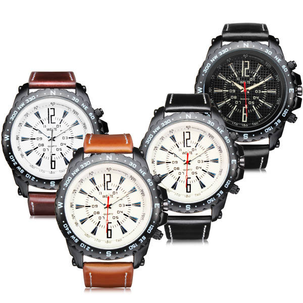 WEITE Military Army Style Coffee Leather Band Quartz Analog Watch