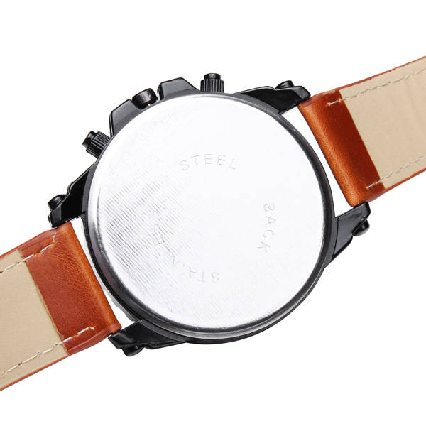 Specification: Item Type: Wrist Watch Dial Window Material Type: Glass Water Resistance Depth: 0m Movement: Quartz Watch Clasp Type: Buckle Style: Sport & Fashion & Casual Gender: Male Dial Display: Analog Case Shape: Round Band Material Type: Leather Dial Diameter: About 4.2cm Band Length: About 24cm Band Width: About 2cm