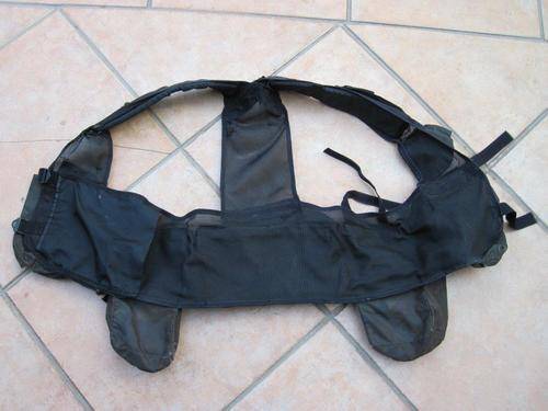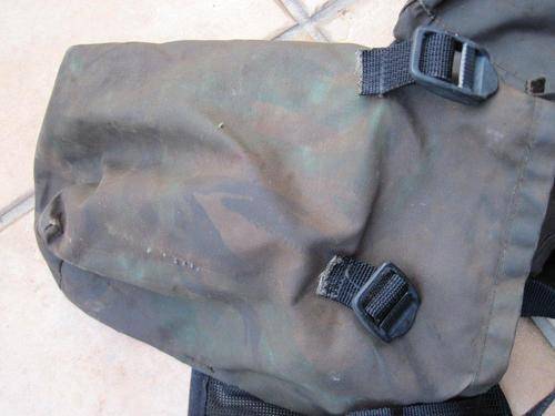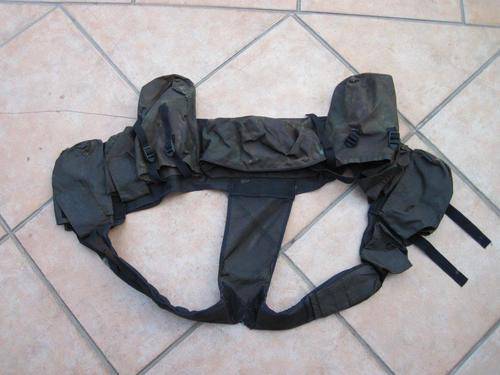 Some of the original pouches have been removed by the previous owner - the large rear pouch is missing and the one front grenade pouch on the shoulder straps is also missing.