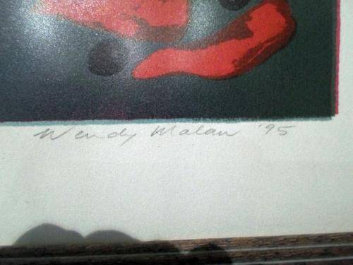 A beautiful silkscreen from Wendy Malan featuring a duck. It is a limited edition silkscreen, this one being nr 37 of 100. It measures 69cm x 49cm and the frame measures 77cm x 57cm. Spoil yourself today, bid now!!