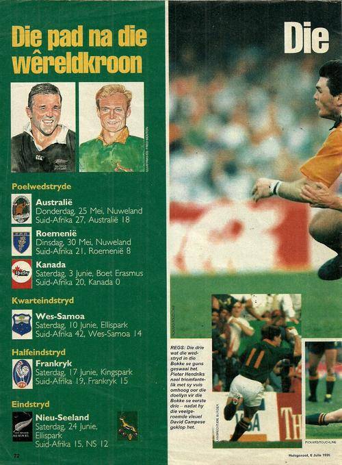 WERLD KAMPIOENE - 1995 RWC HUIS GENOOT Supplement