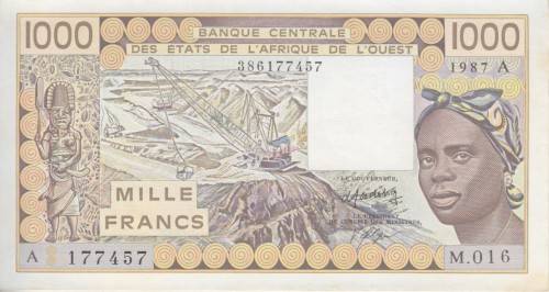 WEST AFRICAN STATES - IVORY COAST - 1000 FRANCS 1981 P107Ab UNC.
