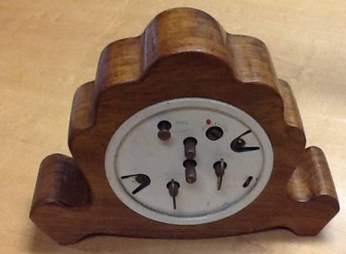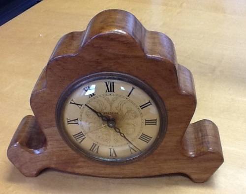 Old Westclox with wooden surround clock made in Scotland.  Both alarm and clock works fine. Approx 16 cm wide x 11.5 high