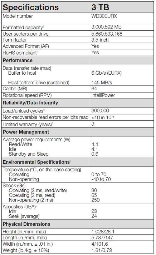 Western Digital 3TB Hard drive WD30EURX (Green Power)