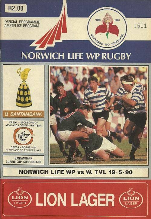 Western Province v Western Transvaal 1990 Currie Cup Match Programme
