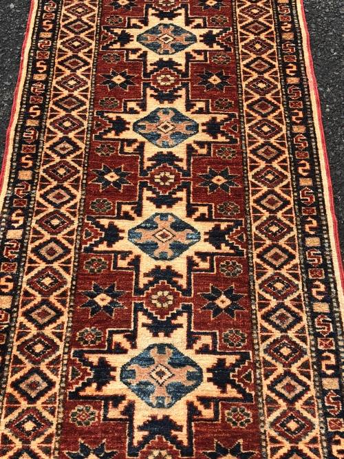 WHAT A BEAUTY !!! PURE WOOL HAND KNOTTED AFGHAN KAZAK PERSIAN RUNNER 3260 X 750mm