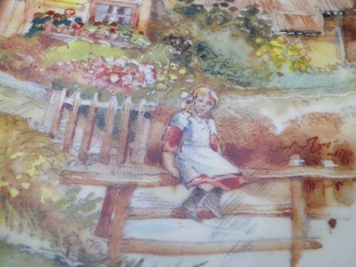 Absolutely WHIMSICAL & delightful this little girl sitting on a bench in an English country garden.