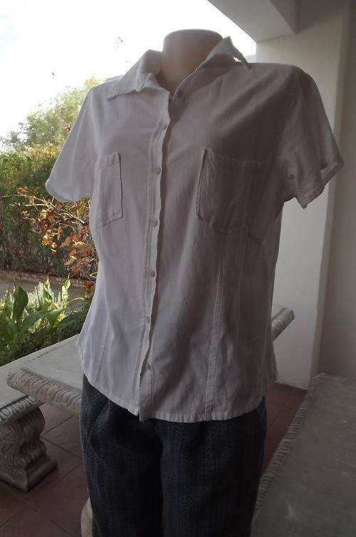 White 100% Cotton Short Sleeve Styled Shirt in size 14/38 - 2 small front pockets - good condition