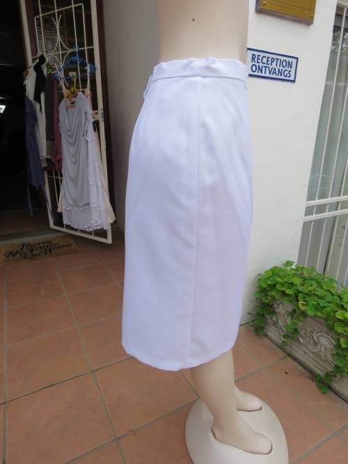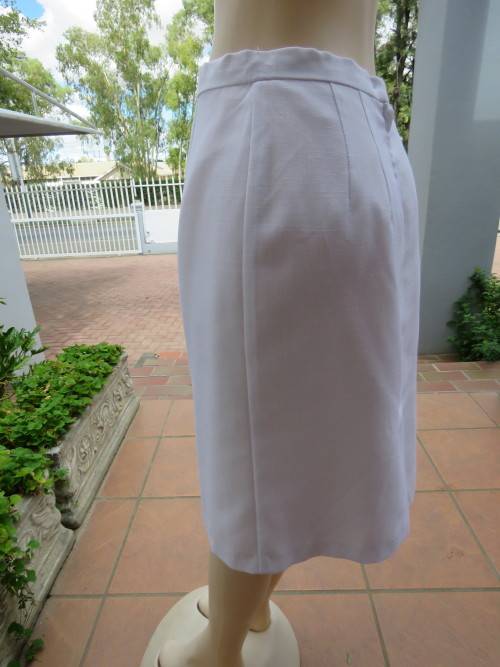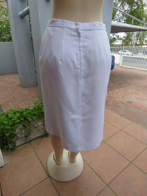 White boutique made linen/polyester blend skirt.Fully lined pencil skirt.Size 36/12.Pleat at back.