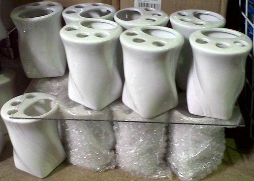 Description:Stylish and Sturdy design, Soap dispenser has a stainless steel easy action pump, Toothbrush holder has the capacity to hold 3 toothbrushes and toothpaste, Easy to Clean