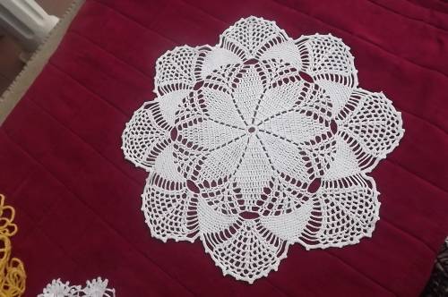 White crochet doily in popular stitch.Diameter 42cm. Good condition.