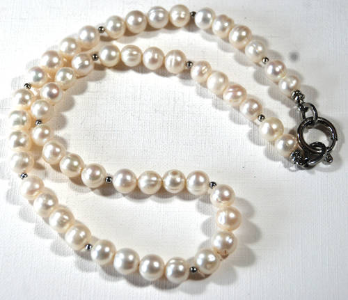 White freshwater pearls necklace with stainless steel clasp - 8-9mm round pearls