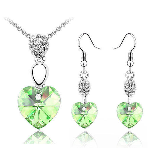 White gold plated Necklace, pendant & Earring set with Austrian crystal rhinestones- 4 Color option